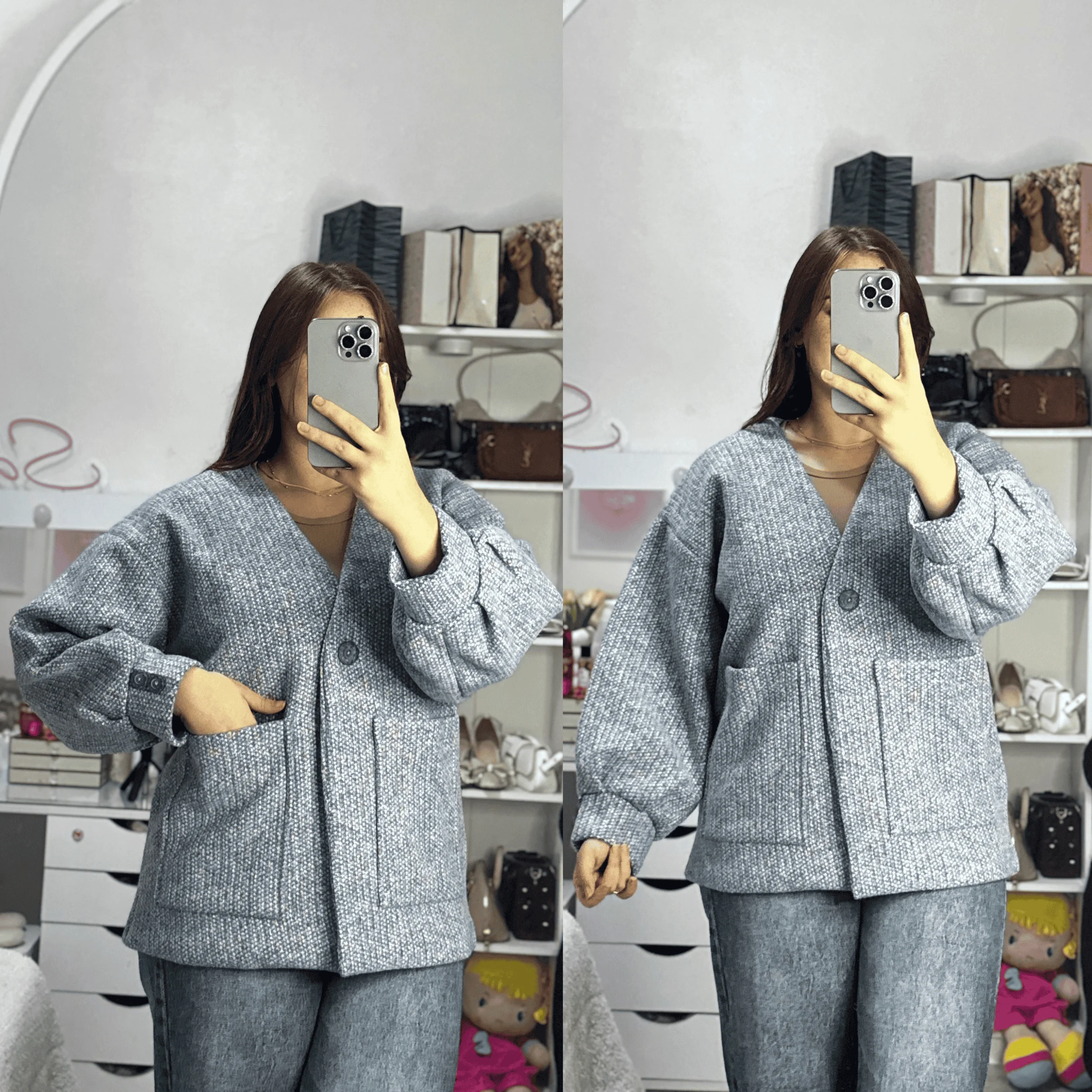 لأنه يجمع بين الدفء، الراحة والأناقة في قطعة واحدة 👑 قماش بوكليت فاخر، ناعم ودافئ تصميم عملي يرافقك في الخروج والاستعمال اليومي